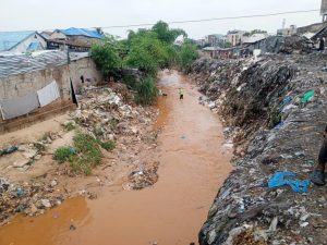Sur le lit de cette rivière, l’odeur nauséabonde des eaux usées des toilettes et déchets de tout genre jonchent aux côtés des habitations dont la plupart en taudis.