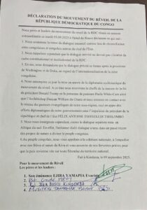 Cette position a été exprimée mardi 9 septembre 2025 à Kinshasa au cours d’une session extraordinaire des leaders du mouvement du Réveil de la RDC, sous la présidence de l’archevêque Evariste Ejiba Yamapia, représentant de légal.
